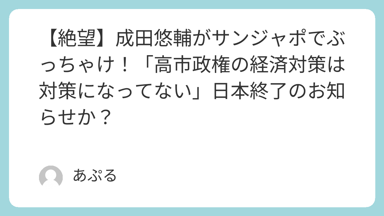 成田悠輔氏のサンジャポでの発言は、高市政権の経済対策に対する国民の不満や日本経済への漠然とした不安を代弁するものとして、多くの反響を呼んだようです。円安・物価高への根本的な対策が見えない中、具体的な解決策が求められます。