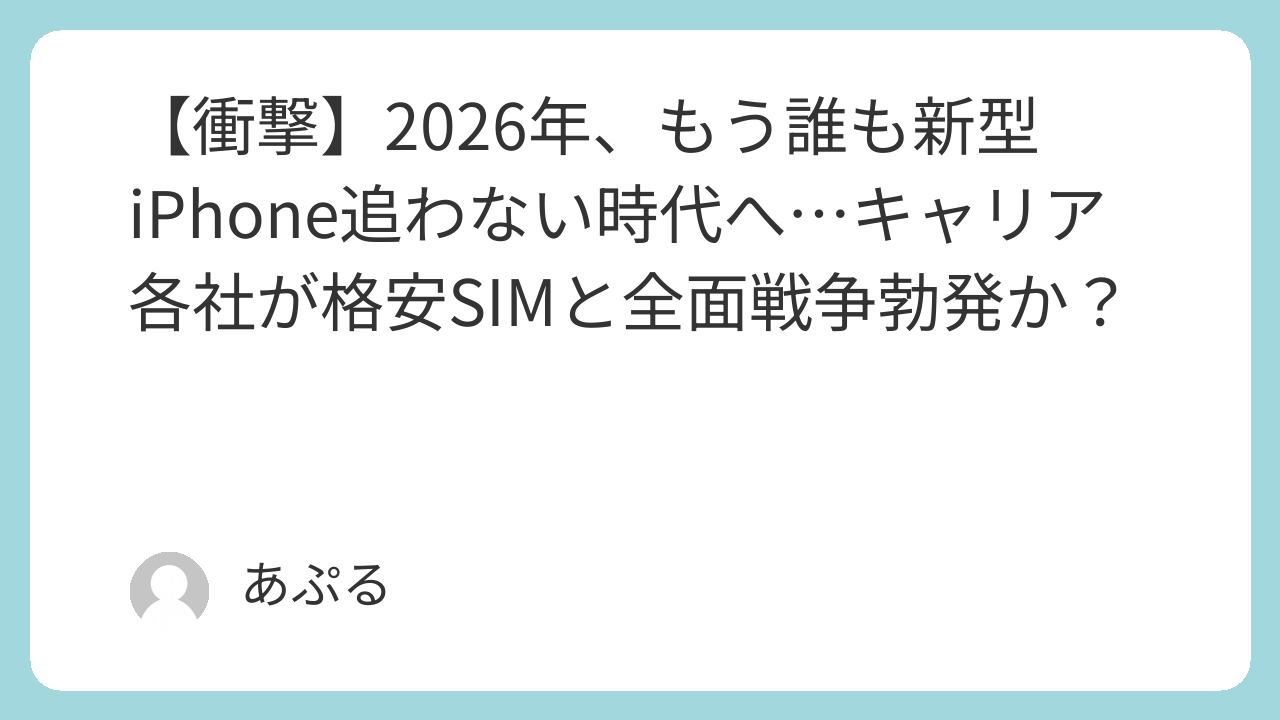 【衝撃】2026年、もう誰も新型iPhone追わない時代へ…キャリア各社が格安SIMと全面戦争勃発か?