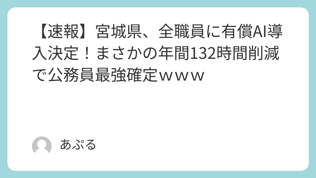 宮城県が全職員に生成AIを導入するというニュースは、多くの賛否両論を呼んでいます。業務効率化や県民サービス向上への期待がある一方で、税金の使い方、情報セキュリティ、そして職員のスキルや責任の所在に関する懸念も示されました。今後の導入効果が注目され、日本の働き方改革を加速させる一歩となるか、あるいは課題を浮き彫りにするケースとなるか、全国の自治体からも動向が注目されるでしょう。