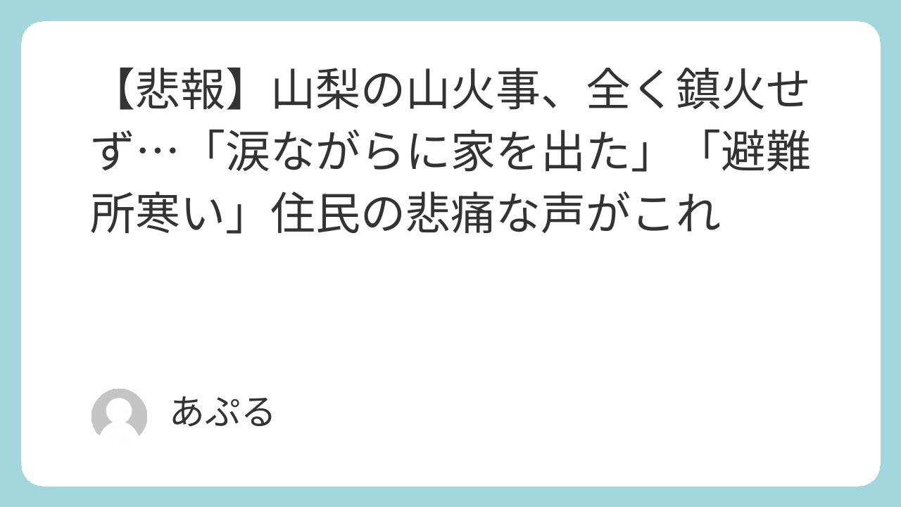 【悲報】山梨の山火事、全く鎮火せず…「涙ながらに家を出た」「避難所寒い」住民の悲痛な声がこれ