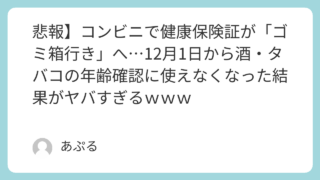 悲報】コンビニで健康保険証が「ゴミ箱行き」へ…12月1日から酒・タバコの年齢確認に使えなくなった結果がヤバすぎるwww
