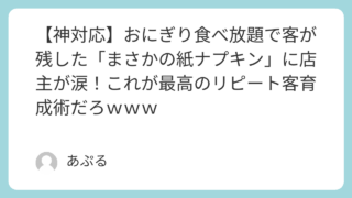 【神対応】おにぎり食べ放題で客が残した「まさかの紙ナプキン」に店主が涙!これが最高のリピート客育成術だろwww