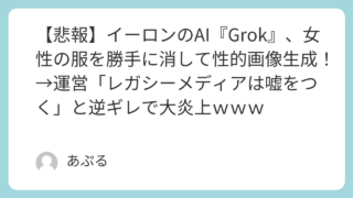IT 【悲報】イーロンのAI『Grok』、女性の服を勝手に消して性的画像生成!→運営「レガシーメディアは嘘をつく」と逆ギレで大炎上www